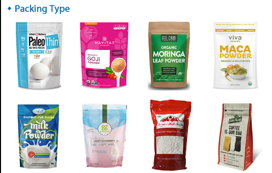 ម៉ាស៊ីនបំពេញ និងផ្សាភ្ជាប់ថង់ដែលផលិតមុននេះ ផ្សំឡើងដោយស្ថានីយការងារចំនួន 8 ប្រកបដោយប្រសិទ្ធភាព និងស្ថេរភាព សង្កត់ធ្ងន់លើកញ្ចប់ថង់ឈរ ថង់ខ្សែរ៉ូត កាបូបស្ពាយ និងថង់ដែលផលិតជាមុនផ្សេងៗ។ បានសហការជាមួយ វីស auger និង conveyors លើកដោយស្វ័យប្រវត្តិ, វាត្រូវបានអនុវត្តទៅ ម្សៅ សម្ភារៈ។