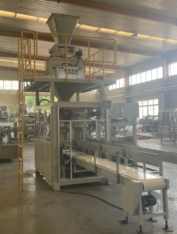 ម៉ាស៊ីននេះគឺសមរម្យសម្រាប់ការវេចខ្ចប់សម្ភារៈគ្រាប់ក្នុងថង់ត្បាញធំ ឬថង់ក្រដាស kraft ឬថង់ខ្សែភាពយន្ត PE ហើយទម្ងន់វេចខ្ចប់គឺ 25kg ~ 30kg ។