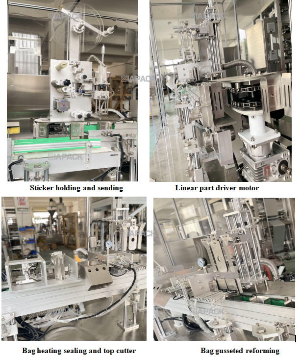 ម៉ាស៊ីននេះគឺមានការរចនាពិសេសសម្រាប់ធ្វើកាបូប gusset ដែលមានស្លាកសញ្ញាកំពូល។ បន្ទាប់ពីថង់ពេញជាមួយនឹងផលិតផលទម្លាក់នៅលើម៉ាស៊ីននេះ។ ម៉ាស៊ីននេះនឹងយកកាបូបឆ្លងកាត់មាត់ថង់ម្តងហើយបិទស្លាក។ ស៊ុមម៉ាស៊ីនផលិតដោយ SUS304 .PLC និងអេក្រង់ប៉ះបានអនុម័តដោយម៉ាក Siemens .ហើយគ្រឿងបន្លាស់ខ្យល់ទទួលយកម៉ាក SMC .Main Electrical components adopt Omron and Schneider brand.ម៉ាស៊ីននេះកំពុងធ្វើការជាមួយម៉ាស៊ីនវេចខ្ចប់ដោយស្វ័យប្រវត្តិដើម្បីឈានដល់ការដាក់ស្លាកកំពូលថង់ដែលបានបញ្ចប់។ ម៉ាស៊ីននេះអាចឈានដល់មុខងារដោយស្វ័យប្រវត្តិ នៃស្លាកដែលបំបែក ,ការផ្ញើស្លាក .ឧបករណ៍ចាប់ស្លាក និងការចុចស្លាក .