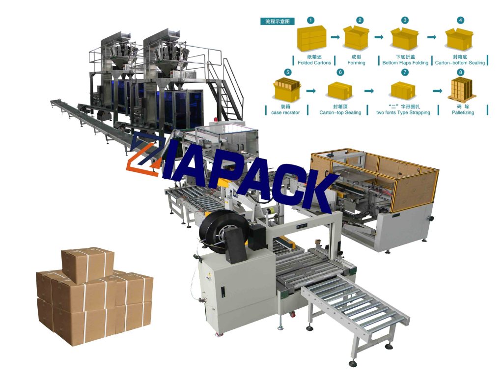 - វាអាចធ្វើការជាមួយម៉ាស៊ីនវេចខ្ចប់ខ្សែភាពយន្តខ្ចប់ខ្ចប់និងរុំម៉ាស៊ីនដើម្បីបង្កើតខ្សែផលិតកម្មវេចខ្ចប់ចុងបន្ទាត់។