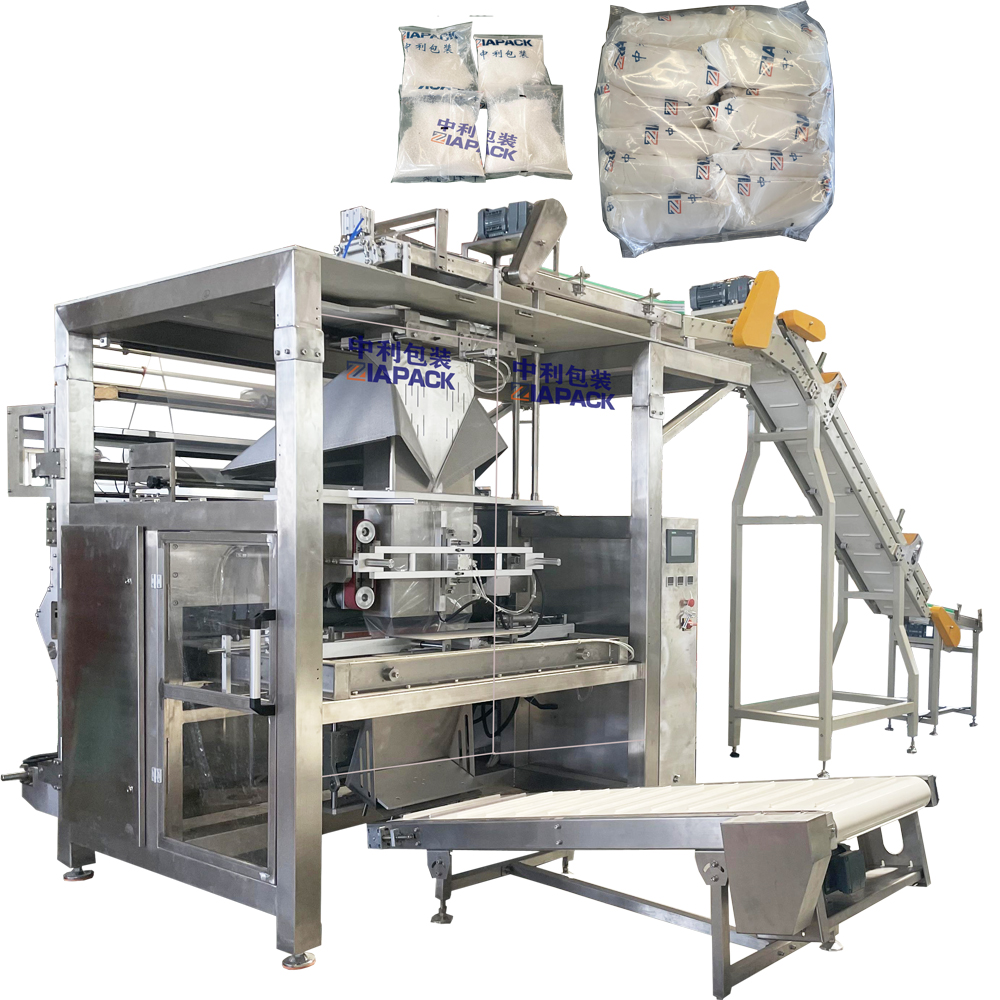 ម៉ាស៊ីននេះគឺសមរម្យសម្រាប់ការវេចខ្ចប់ថង់តូចទៅក្នុងថង់ធំ។ម៉ាស៊ីនអាចផលិតកាបូបដោយស្វ័យប្រវត្តិ ហើយបំពេញក្នុងថង់តូច ហើយបន្ទាប់មកផ្សាភ្ជាប់ថង់ធំ។ ម៉ាស៊ីននេះរួមមានគ្រឿងខាងក្រោម៖